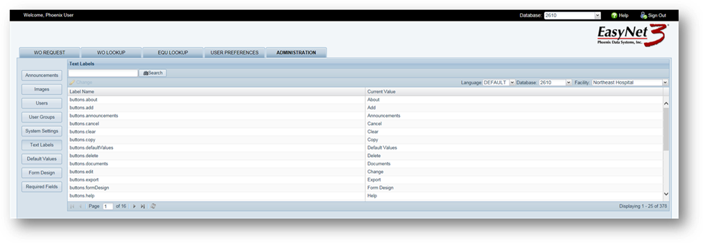 5. Label Name [List] – Highlight an item in the list and click on the Edit Button. The item appears in the header of the lower table – Edit Label: xxx.