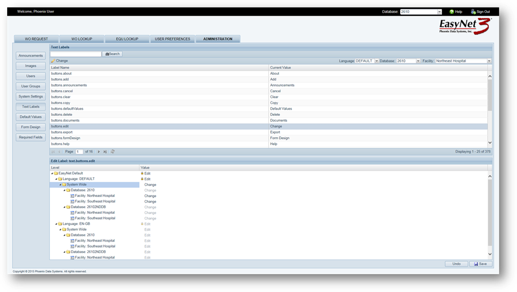 NOTE: It is important to pay close attention to the Level at which you are making field label changes. Changes can be applied at the top or for individual, lower levels