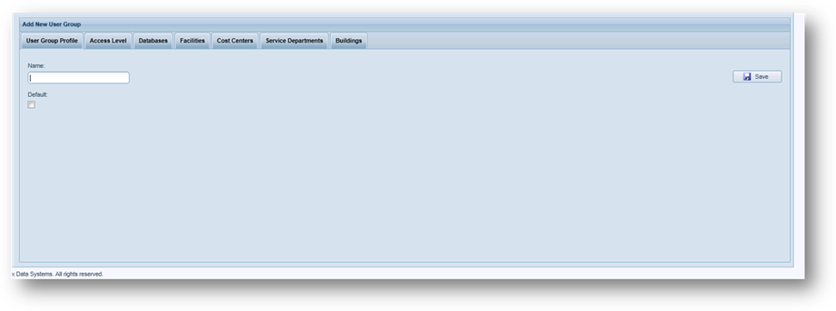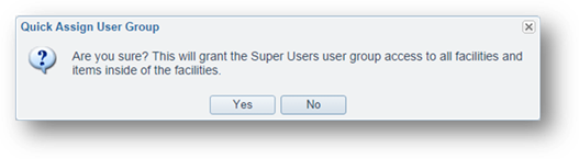 Provides the ability to grant a User Group access to ALL Databases, Facilities, Cost Centers, Service Departments and Buildings with one click. The User Group will also be given access to all sections in EasyNet 3 other than Administration.